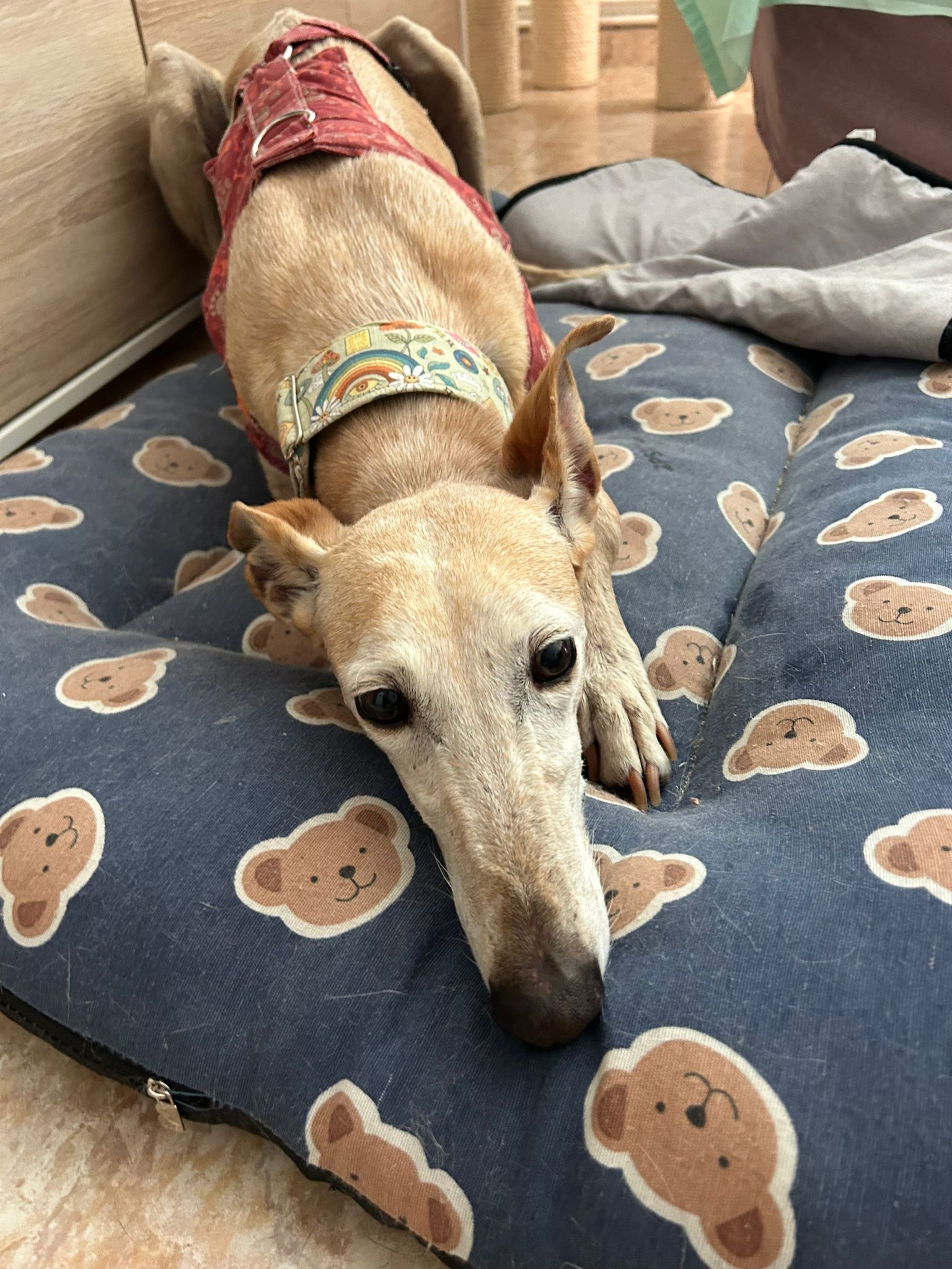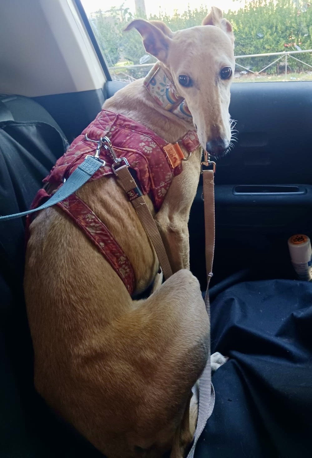 Carácter: Nesa nos fue cedida por su antiguo dueño en la Cañada, ya no le servia. Es cariñosa, buenas con todos los perras, apta con gatos, se comporta genial en casa, pasea bien y le gusta el coche.
